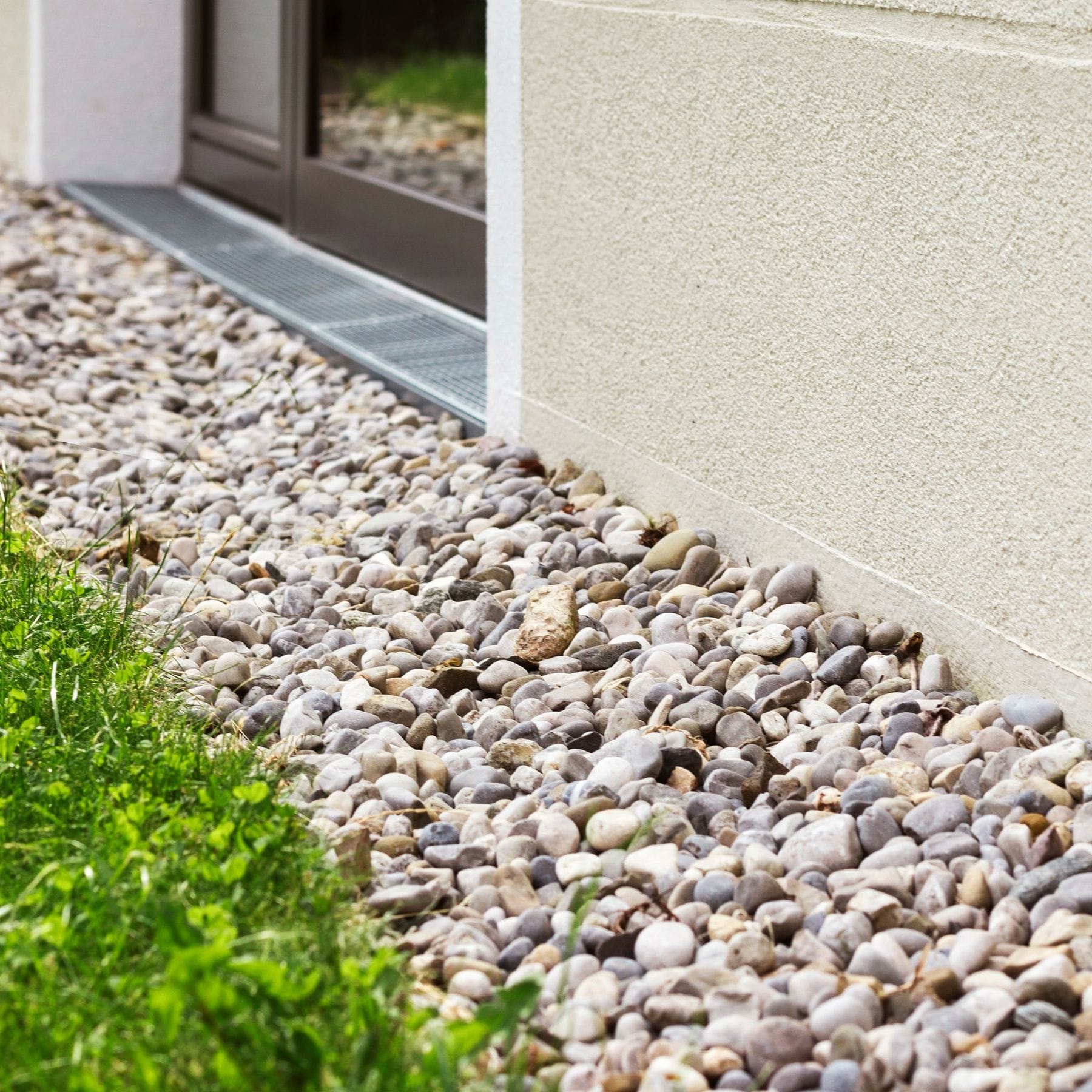 French drain installed below with decorative rock in Winnipeg Manitoba